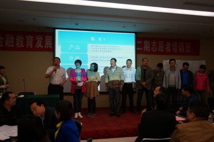 這次培訓的主要內容包括金惠工程介紹、金惠工程教材的編寫與使用、金惠工程管理制度解讀,成人參與式培訓方法,志愿者精神與文化教育—平民教育家晏陽初事跡,項目拓展經驗交流和最新農村金融政策解讀等。我會特別邀請了中國人民銀行研究局綜合政策研究室主任雷曜博士講授《農村金融改革與發展》,瑞爾保護協會高級培訓主管寸艷芳、張勇博士講授《參與式培訓方法》,中國人民銀行巴中中心支行馬乙中講授《志愿者精神與文化》;還邀請了金惠工程志愿者和組織者作了經驗介紹,即中國郵政儲蓄銀行敘永縣支行牟聰講授《基層志愿者工作—我怎么做》,中國人民銀行滑縣支行郭艷茹講授《致力農村金融教育,普惠千村萬戶》。我會按照金惠工程的拓展步驟舉辦志愿者培訓班,旨在通過對志愿者的培訓,使其更加深入了解、認識金惠工程和志愿者精神,以及向農民傳授金融知識的方法。